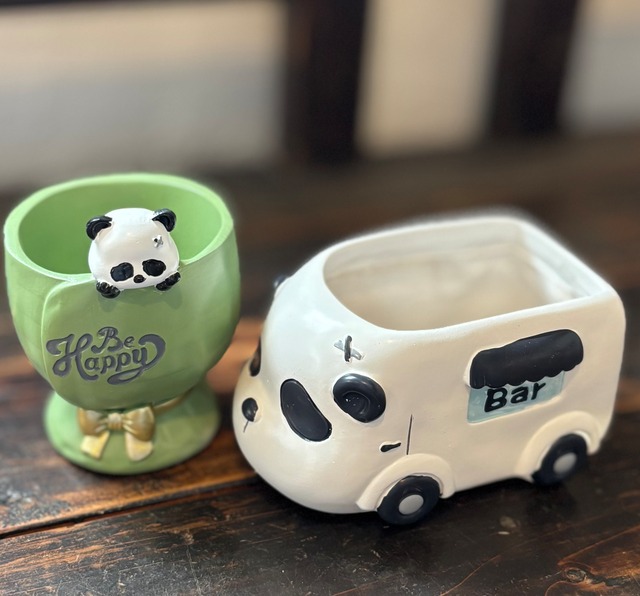 パンダ丸鉢直径約7.5㎝ パンダカー横約13㎝ 既製鉢、底穴あり ちまちま寄せにピッタリ 多肉お任せ1個